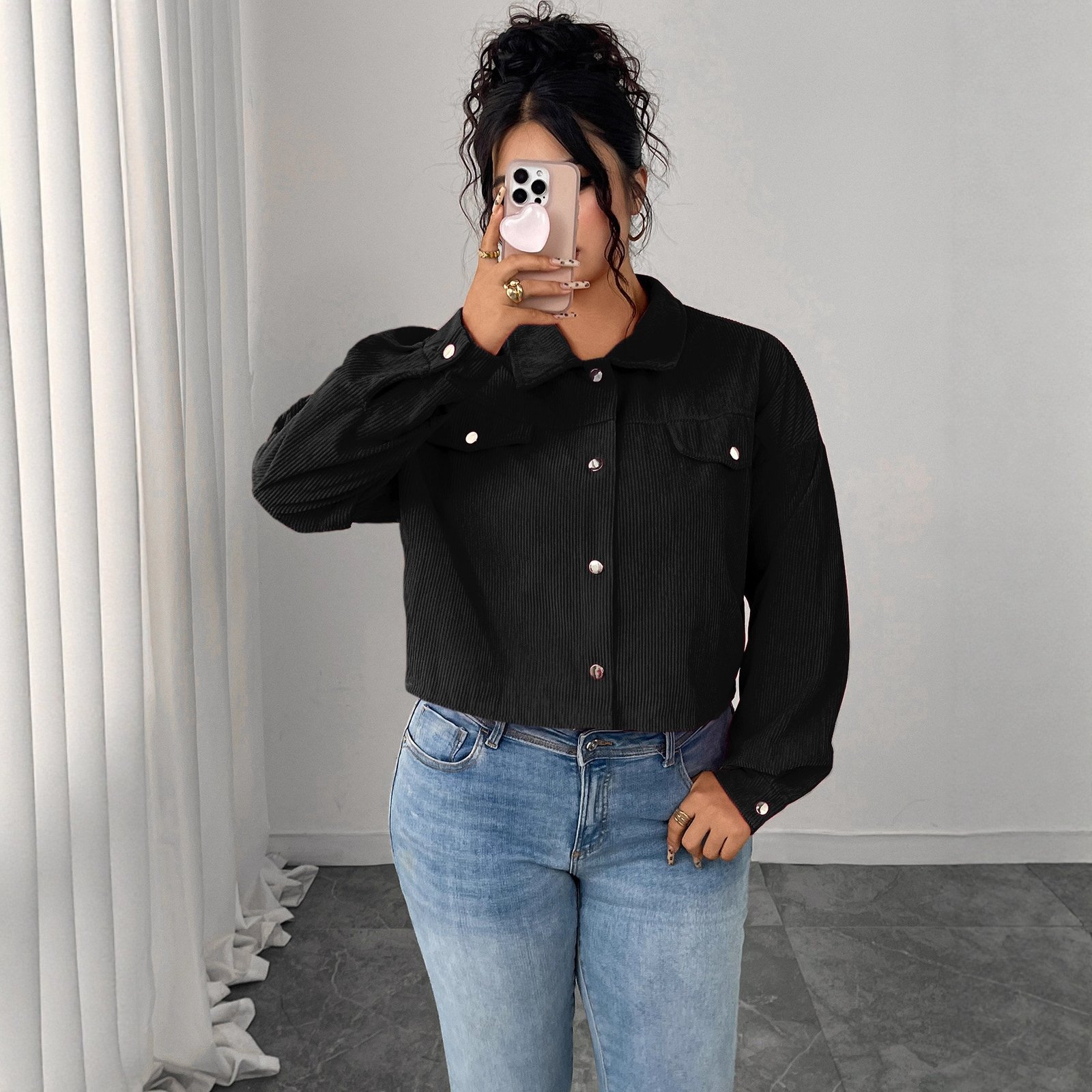 This elegant corduroy jacket is designed for versatile styling. The lightweight knitted fabric ensures comfort, while the trendy lantern sleeves add a touch of sophistication. Perfect for commuting or casual outings, this jacket features a single-breasted button closure and is available in a variety of colors.