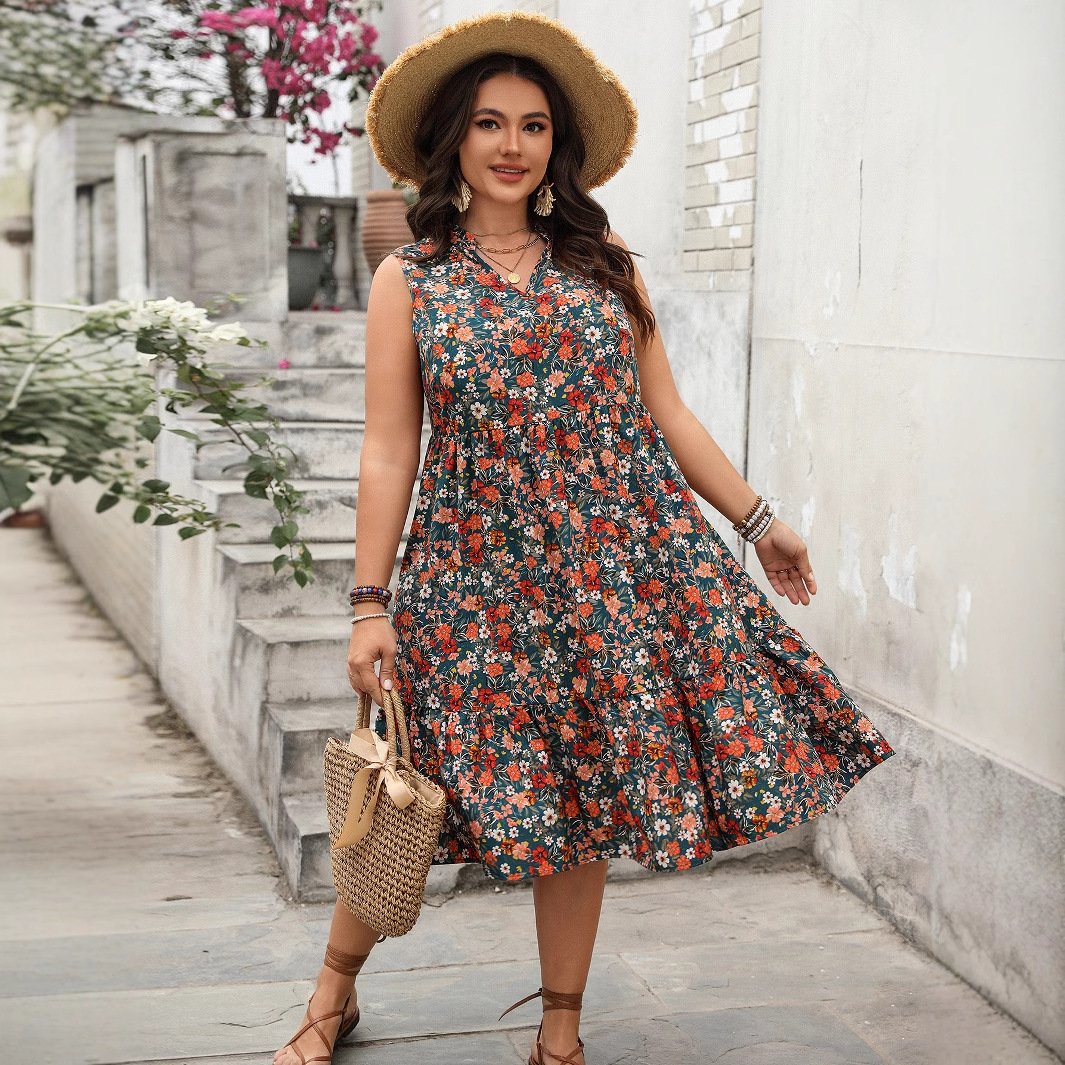 Our stunning sleeveless maxi dress features a beautiful floral print that elevates your style while providing a comfortable fit. The fabric is made from high-quality polyester, ensuring durability and ease of care. With a flattering V-neckline and an elegant silhouette, this dress is perfect for any casual or professional setting.