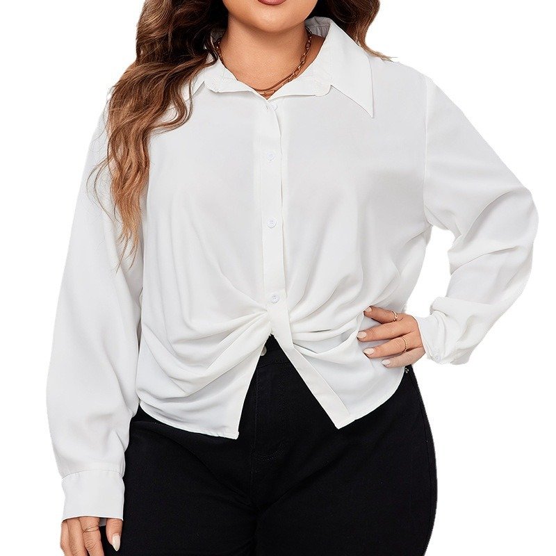 This elegant white chiffon shirt is designed for comfort and style, making it perfect for any casual or professional setting. The lightweight polyester fabric ensures breathability, while the unique irregular cut adds a fashionable touch.