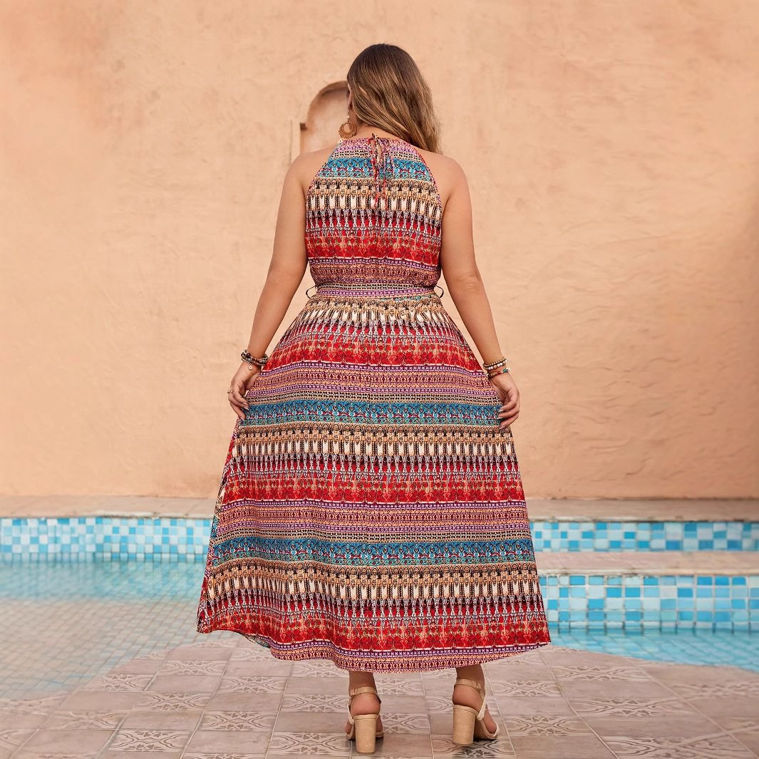 Our stunning floral print maxi dress is designed for elegance and comfort. The dress features a halter neckline and a relaxed fit, making it perfect for both casual outings and more formal occasions.