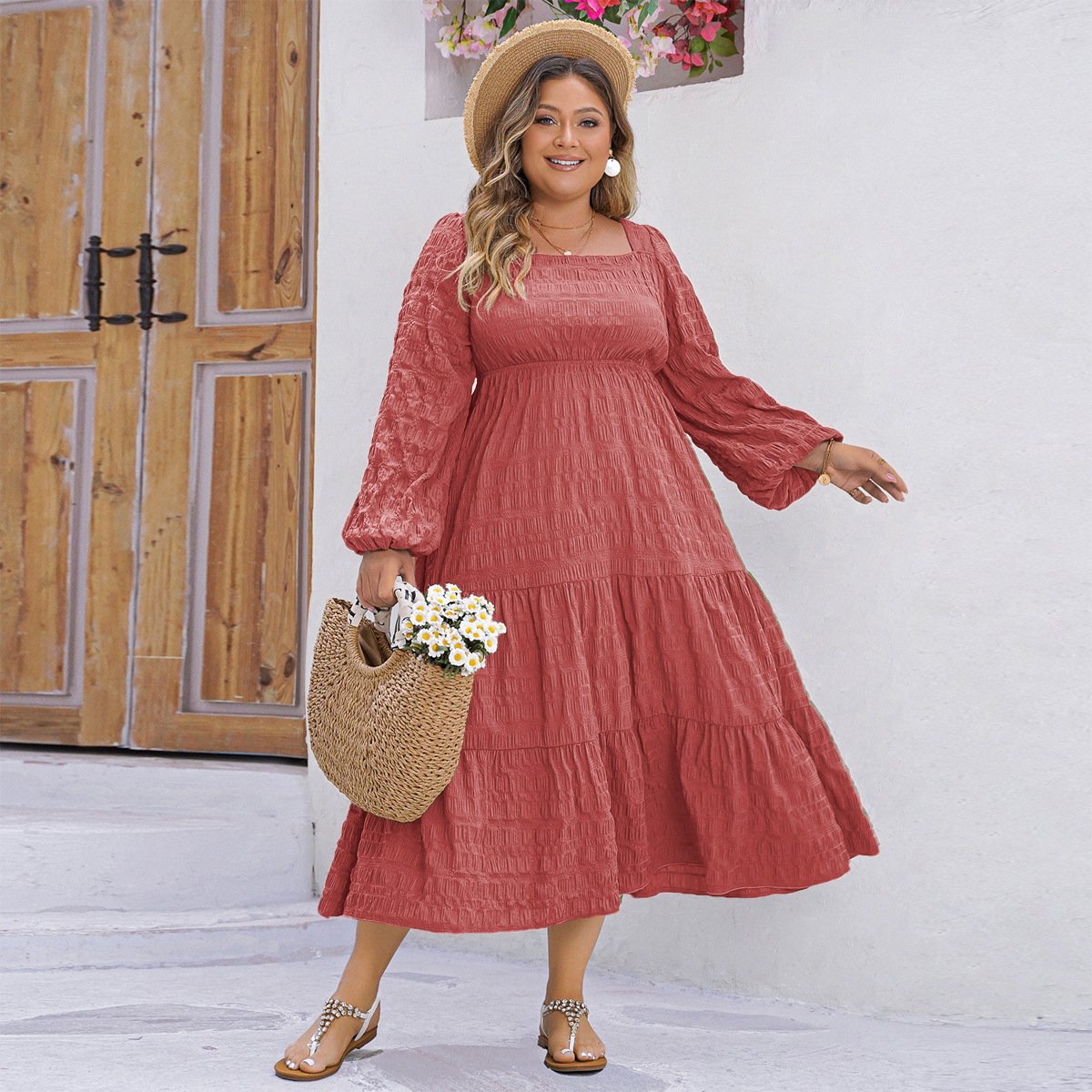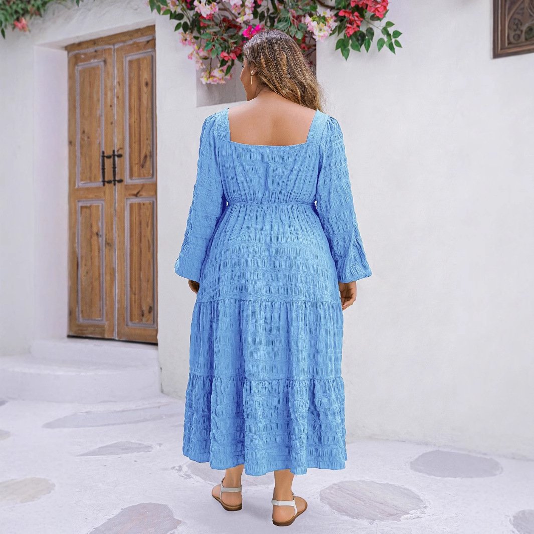 This elegant plus size dress features a flattering square neckline and long bell sleeves, perfect for any casual occasion. Made with high-quality polyester, it is both comfortable and stylish. The slip-on design offers convenience, while the lightweight fabric is breathable for all-day wear.