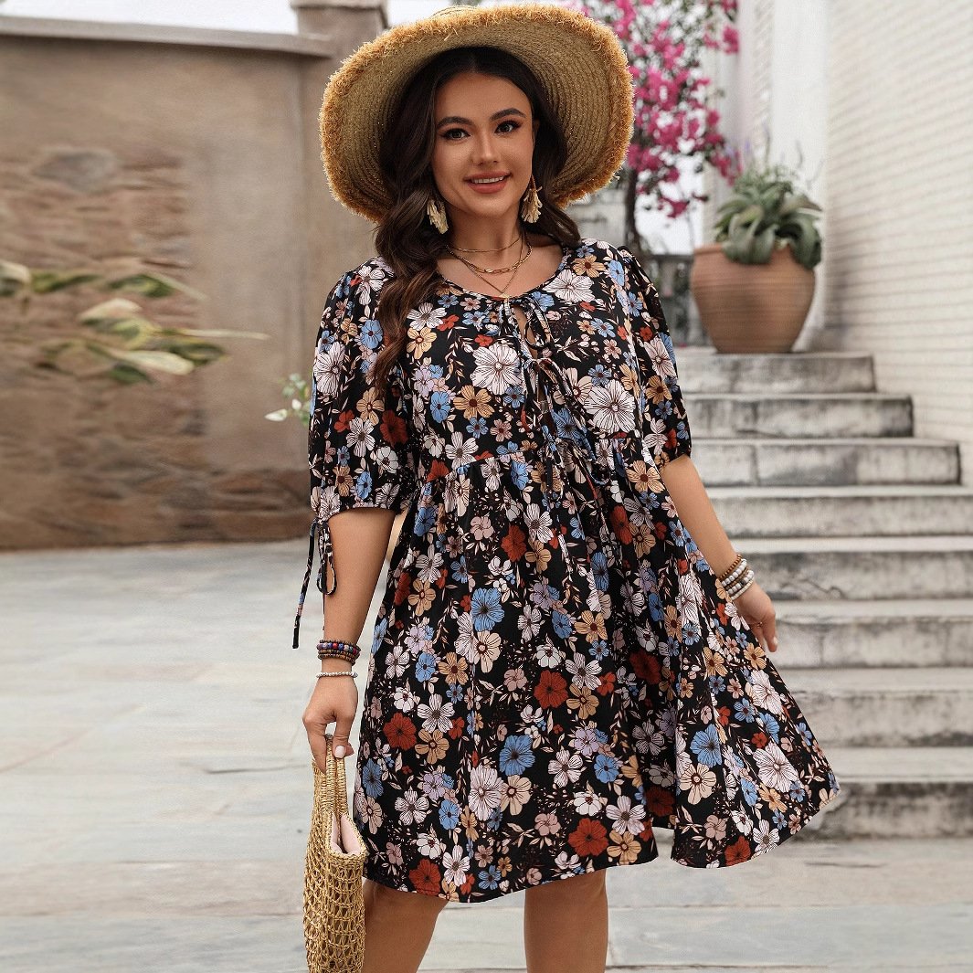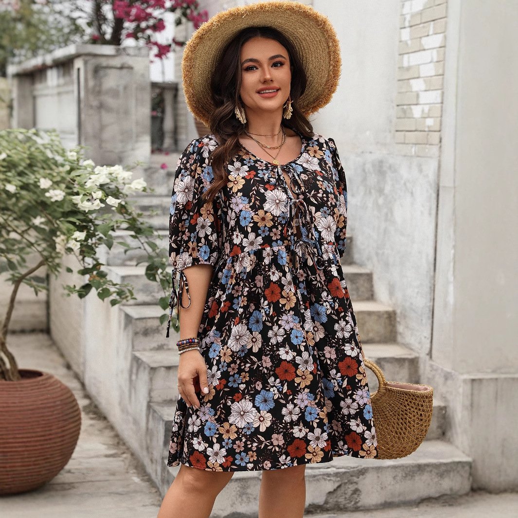 This plus size floral print dress is perfect for your vacation wardrobe. Its relaxed fit and lightweight chiffon fabric make it comfortable for all-day wear.