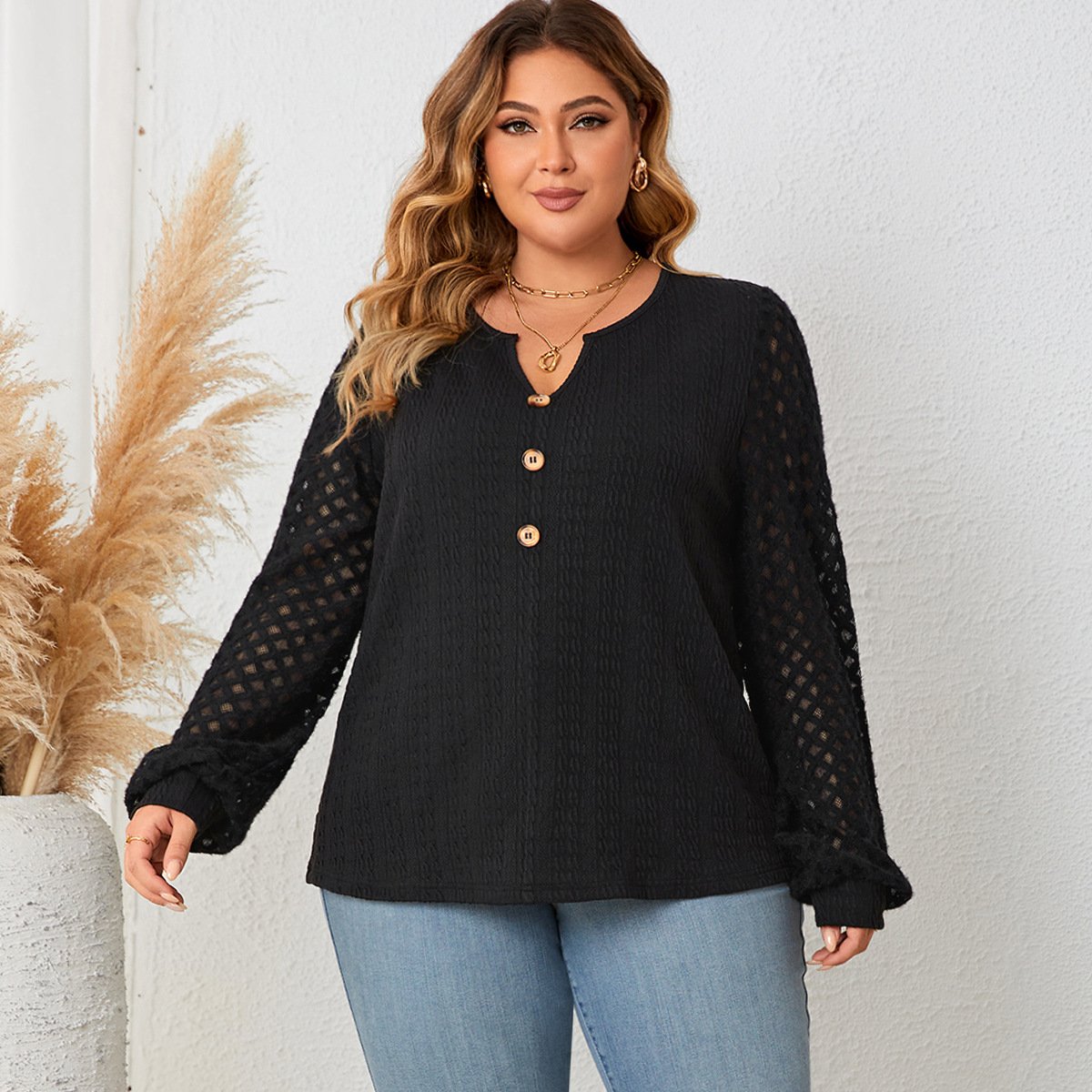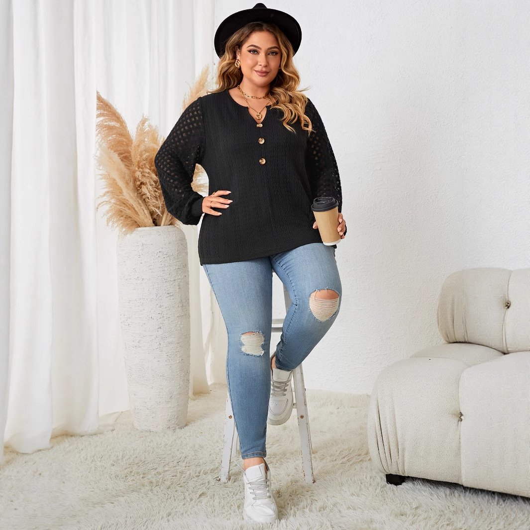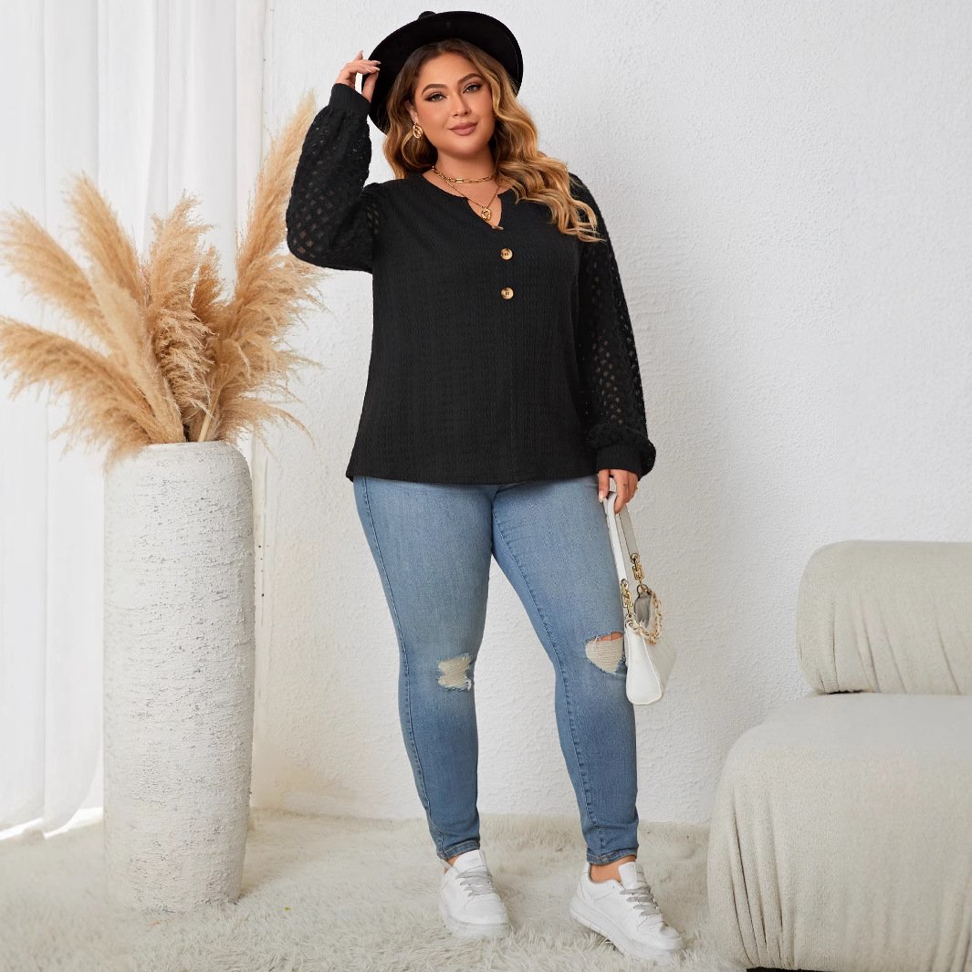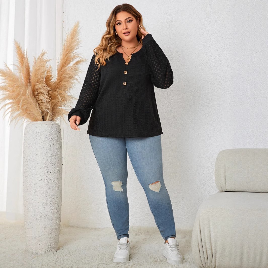 This black knit sweater combines comfort and style, making it an essential addition to your wardrobe. Perfect for office wear or casual outings, it showcases a unique lace trim that adds a touch of sophistication.