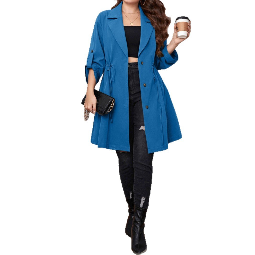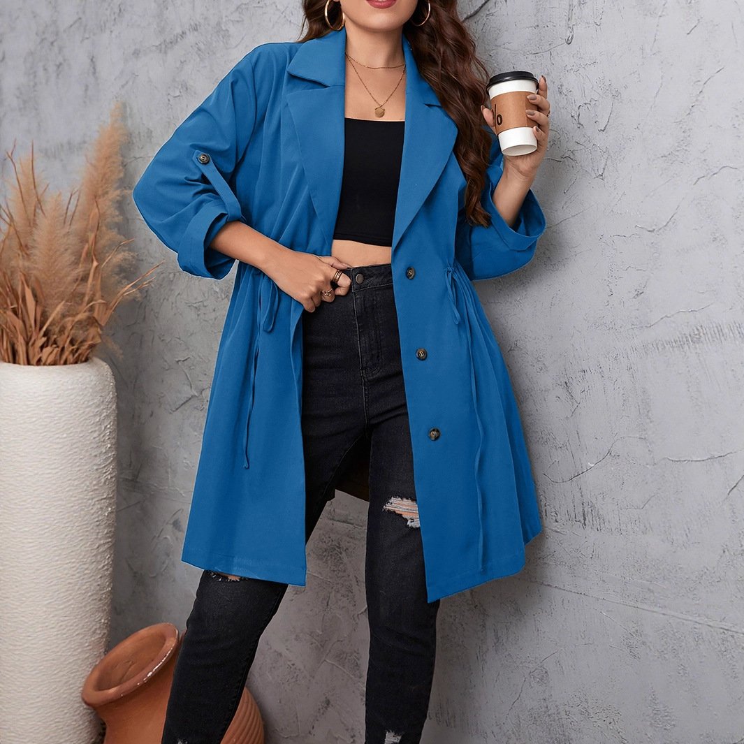 - Design: Blazer collar with a belt detail