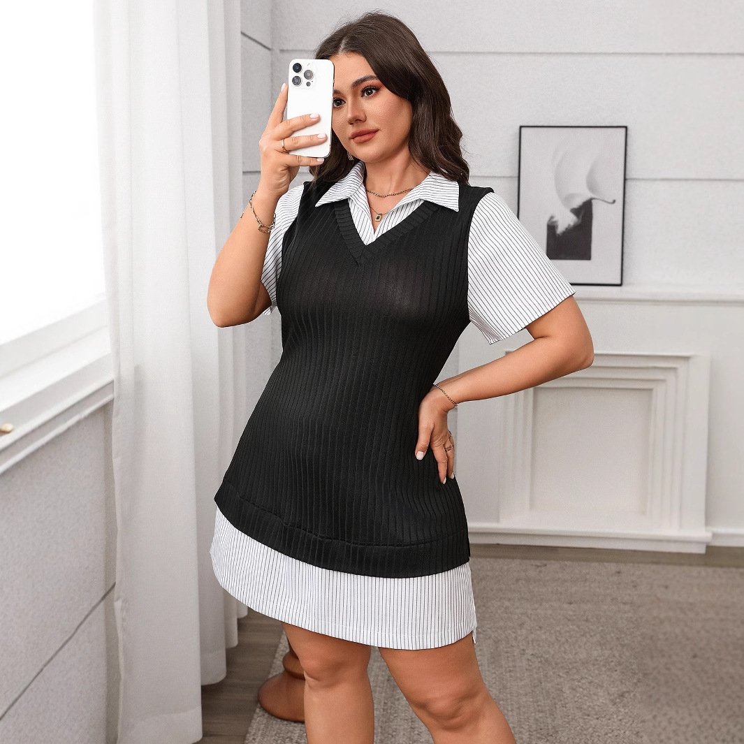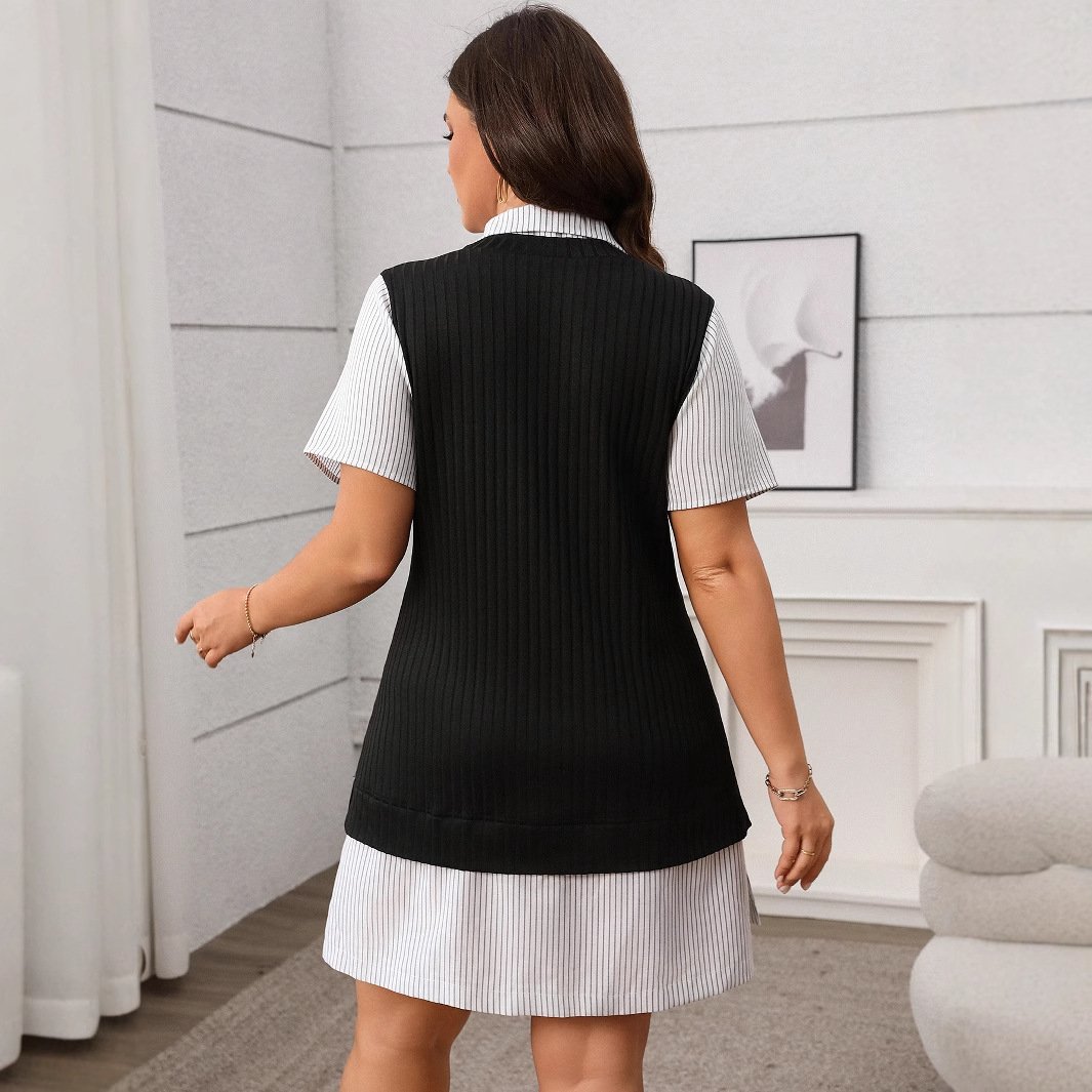 This stylish plus size dress features a blend of stripes and checks for a trendy look. Made from high-quality polyester, it’s designed for comfort and elegance.
