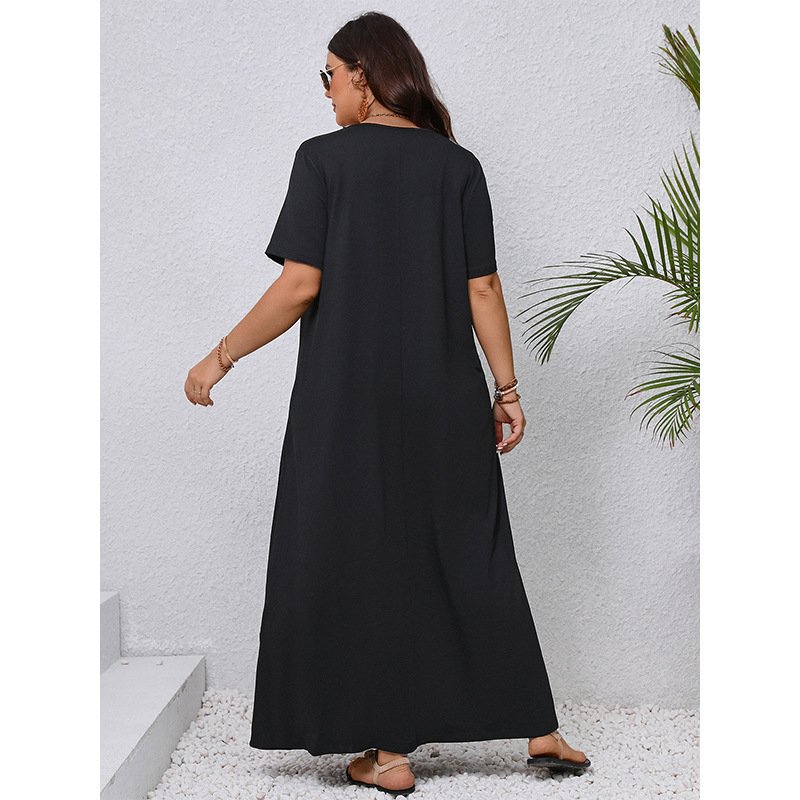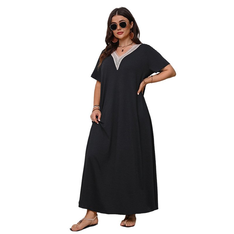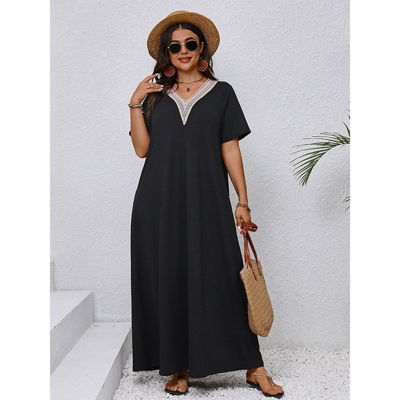 This elegant black dress is perfect for any occasion. The V-neck design flatters the neckline while providing a relaxed fit, making it a versatile addition to your wardrobe. Crafted from high-quality polyester, this A-line dress is both comfortable and stylish.