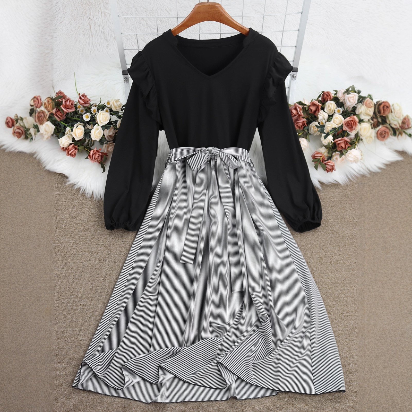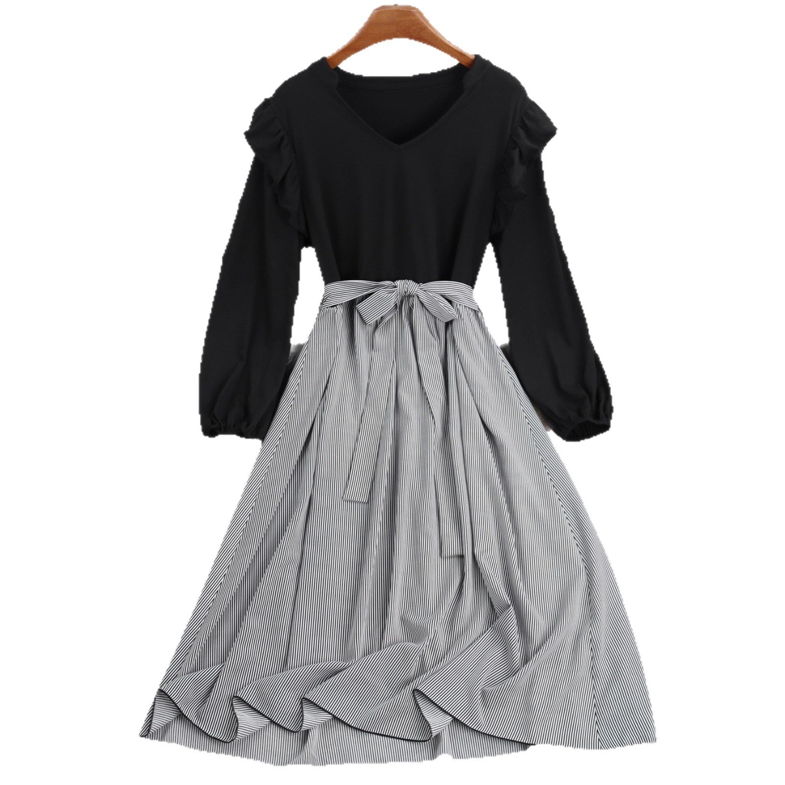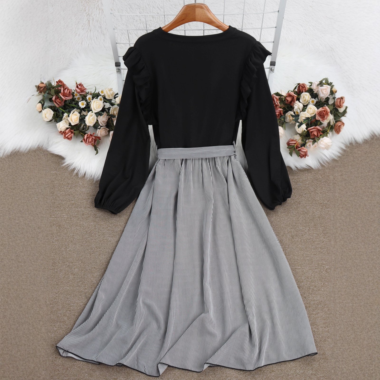 Elevate your wardrobe with our stylish Striped A-Line Dress, featuring a chic tie waist and comfortable long sleeves. Perfect for both casual and formal occasions, this dress offers a touch of elegance to your everyday outfits.