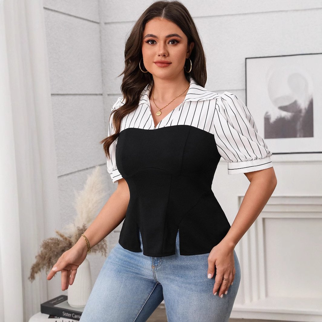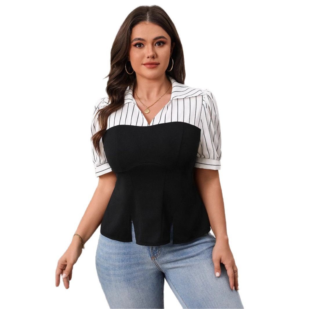 This stylish short sleeve top features a trendy striped design and is made from lightweight, breathable polyester fabric. Perfect for casual outings or a chic office look, it combines comfort with elegance.