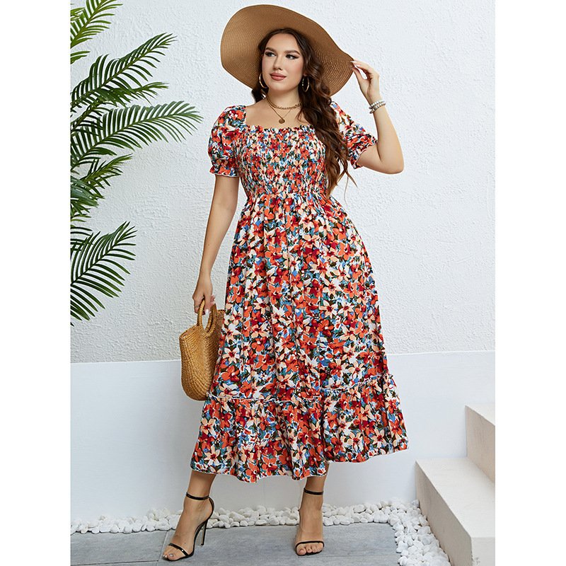 This stunning maxi dress is perfect for summer outings, featuring a beautiful floral pattern and a flattering off-shoulder design. Crafted from high-quality polyester, it ensures comfort and breathability. The dress has a A-line silhouette, mid-waisted fit, and short puff sleeves, making it both stylish and comfortable.