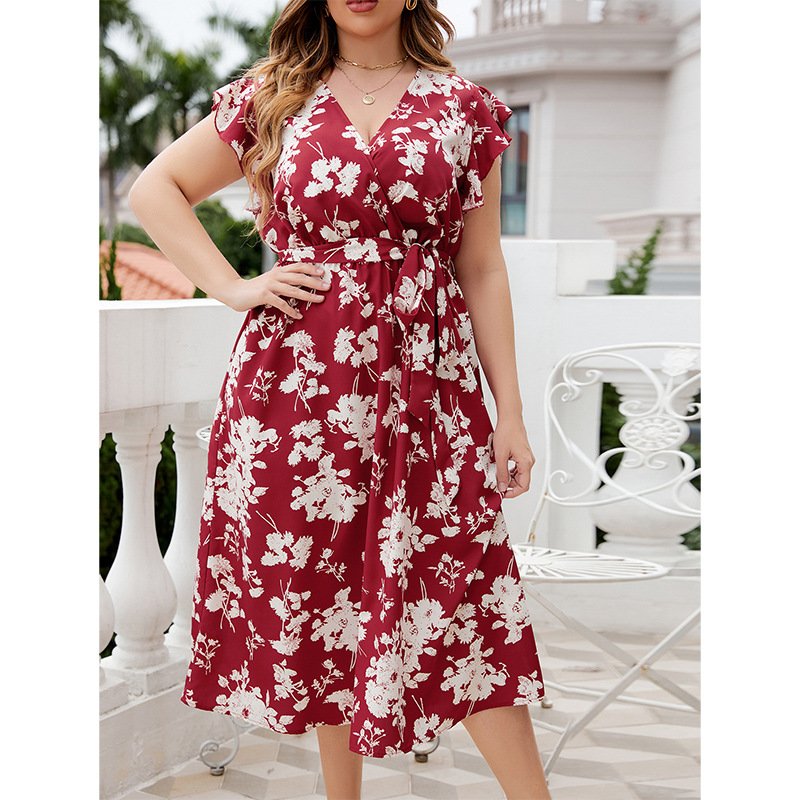 This red floral midi dress is an essential addition to your wardrobe, providing both comfort and style for your summer outings.